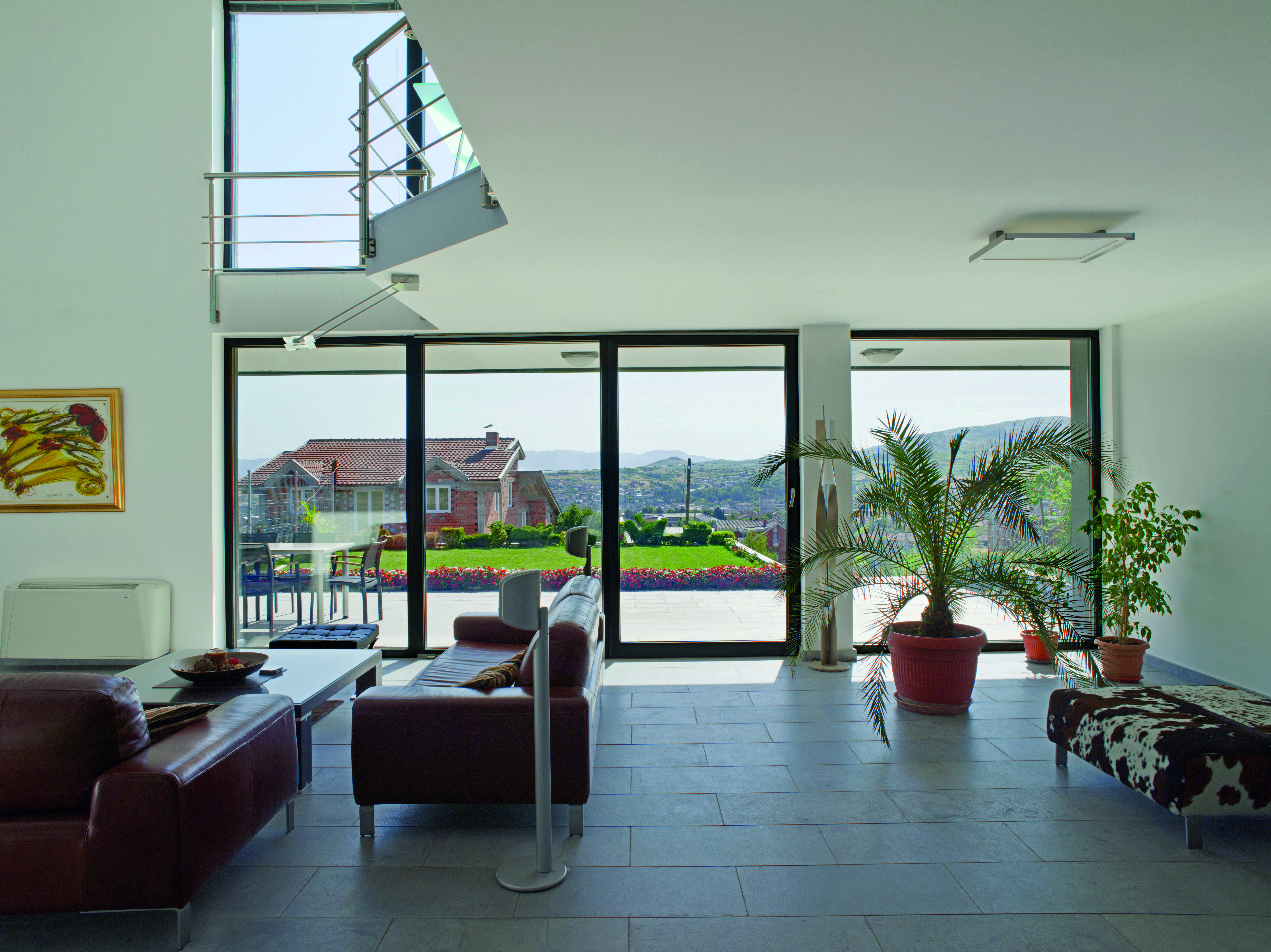 Ideal for large openings and panoramic glazing. Lift-and-slide operation ensures effortless movement, superior sealing, and outstanding energy efficiency with U-values as low as 1.2 W/m²K.