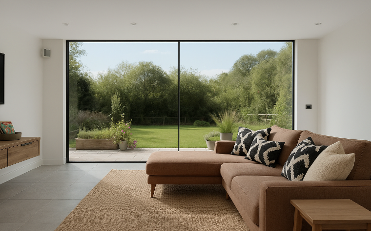 • Materials & finishes: slim, thermally broken aluminium or multi-chamber uPVC. Over 150 RAL colours, heritage tones and dual-colour (different inside/out) available.
