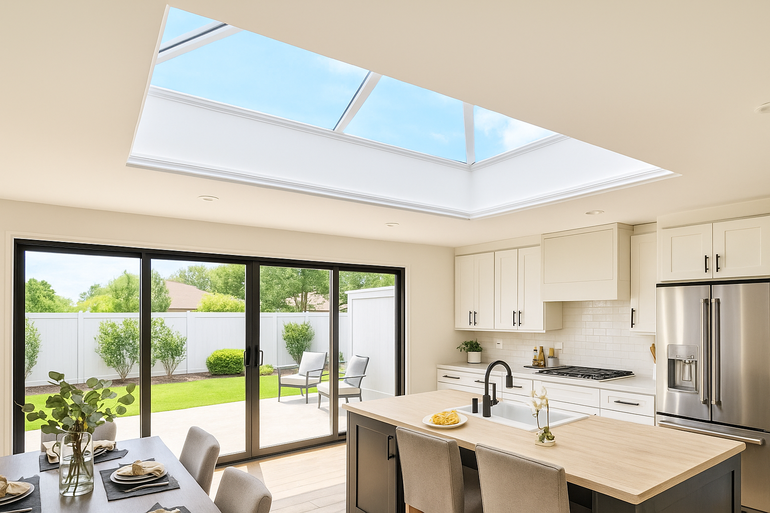 Transform your kitchen or living space into a bright, inviting centerpiece. Our contemporary roof lanterns seamlessly connect indoor and outdoor areas, flooding the space with natural light while maintaining excellent energy efficiency and modern aesthetics.